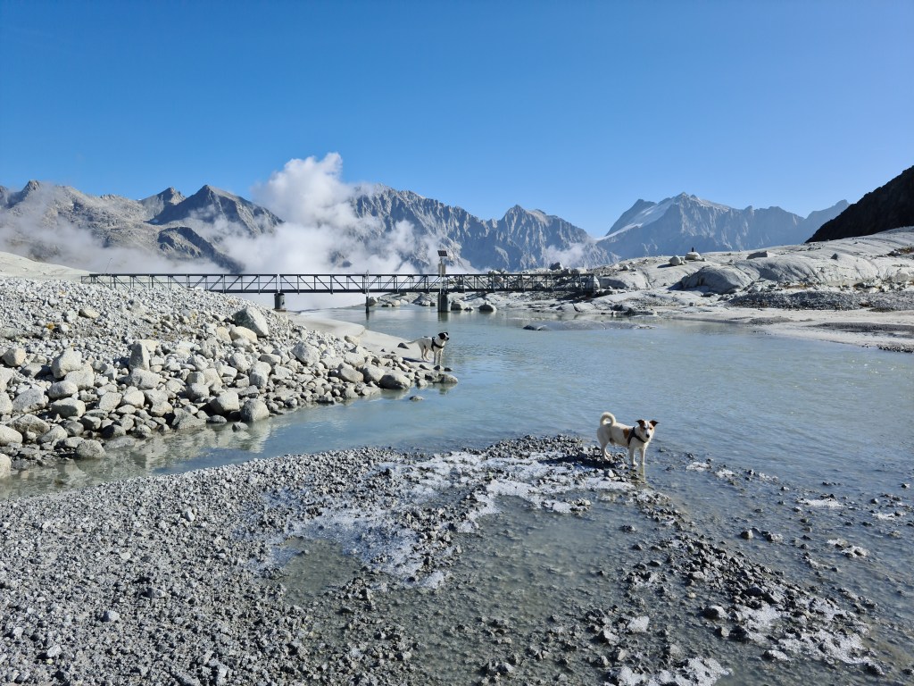 A un certo punto mi viene da ridere e penso: se qualcuno mi chiede dove porto a far correre i miei cani… posso sempre rispondere che li porto sul ghiacciaio.