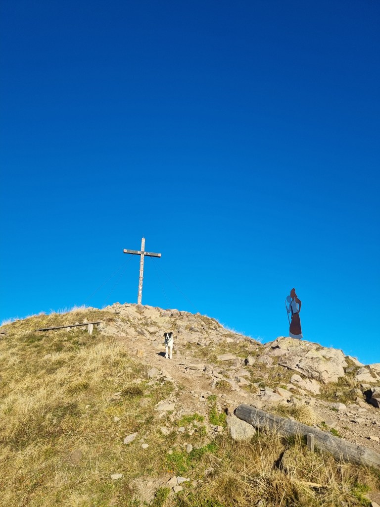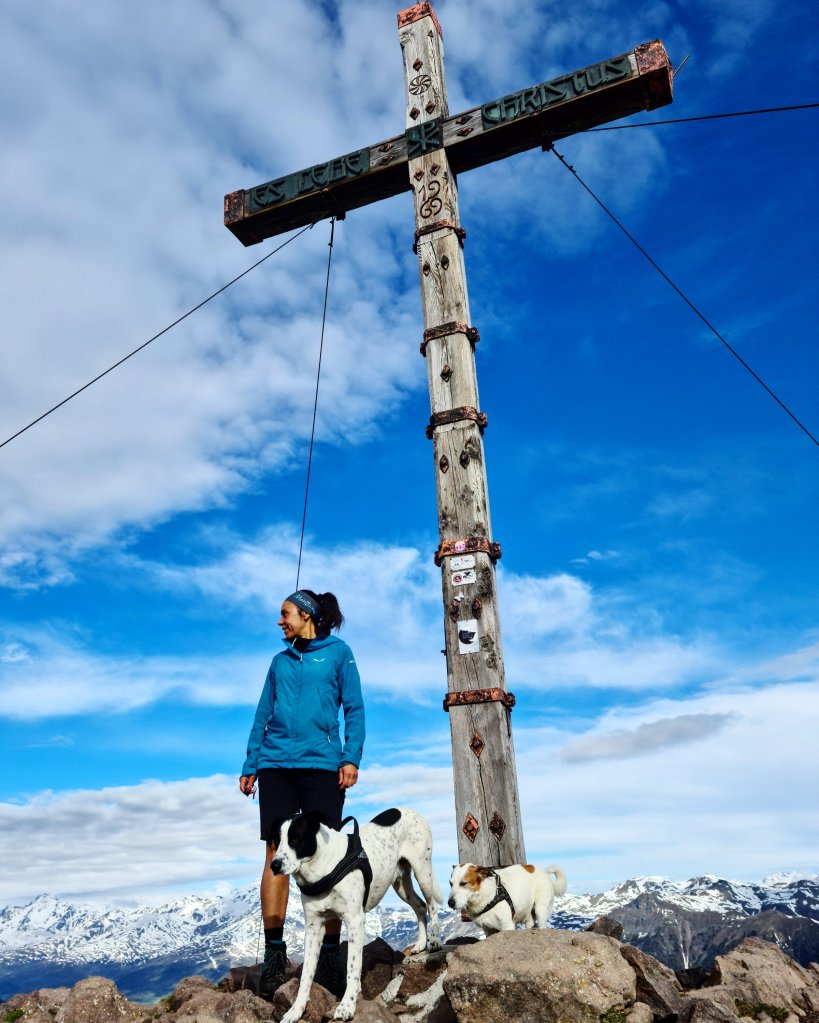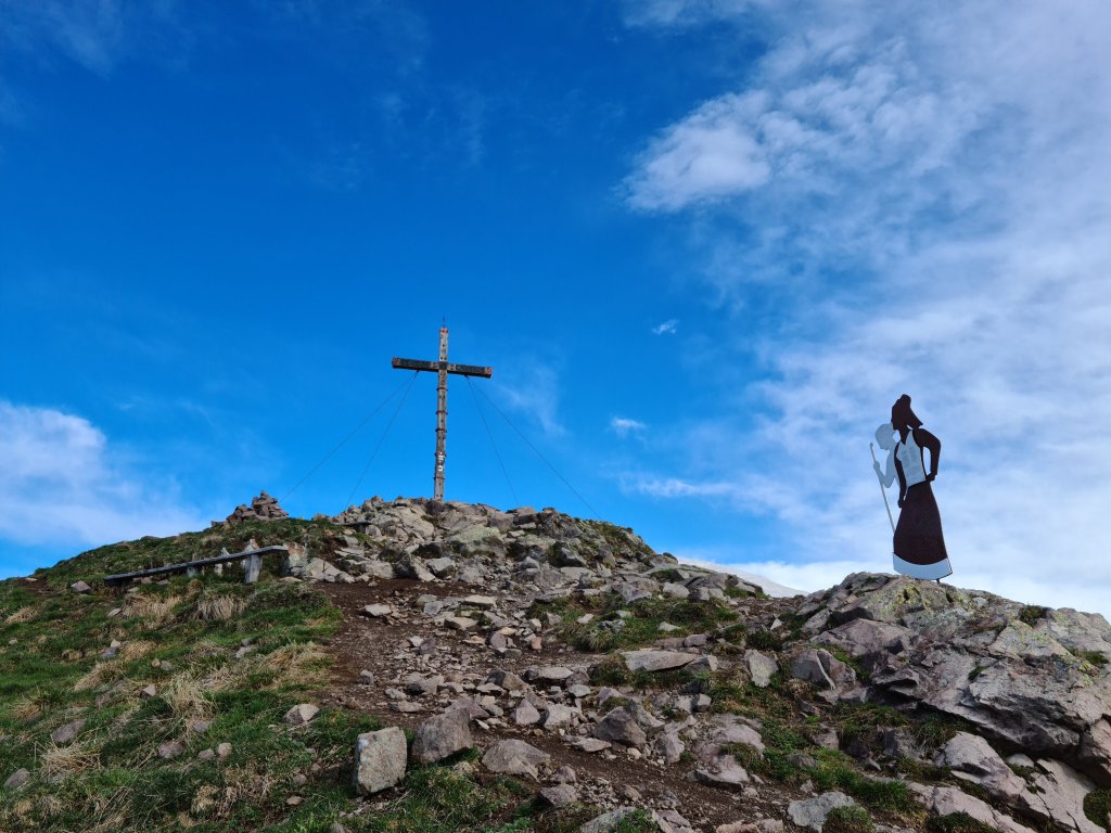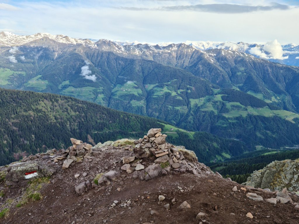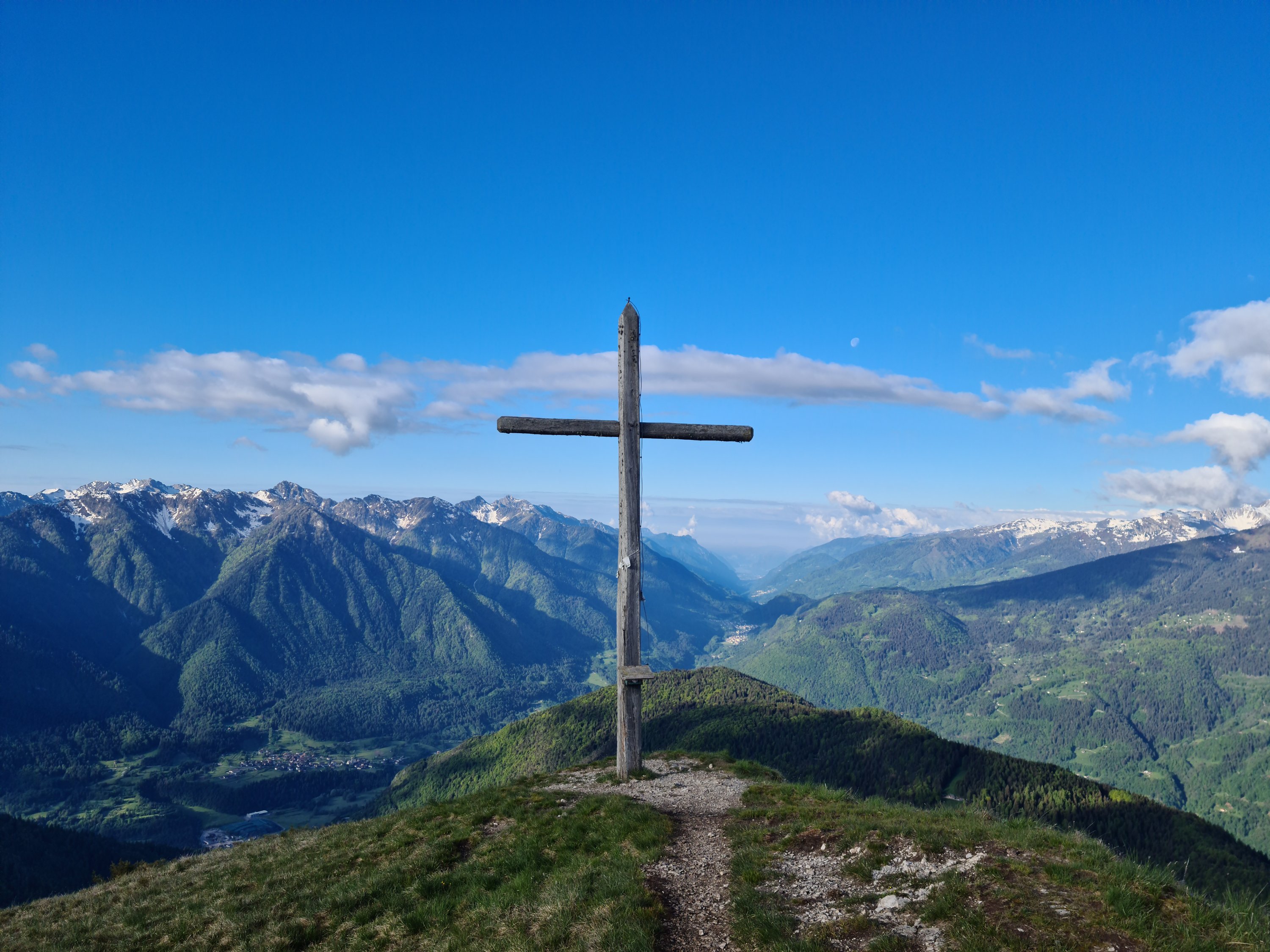 In ogni caso, la fatica vale la pena, perchè la vista dai 2434 mt del Monte Luco, alias Laugenspitze, è veramente meravigliosa! P.s. poco prima della cima c’è una scultura. Se leggete, scoprirete che quella del Monte Luco sembra sia la prima ascensione femminile (documentata) nelle Alpi di due donne (Regina Von Brandis e la figlia Katharina) e risale al 24 agosto del 1552. W le donne!