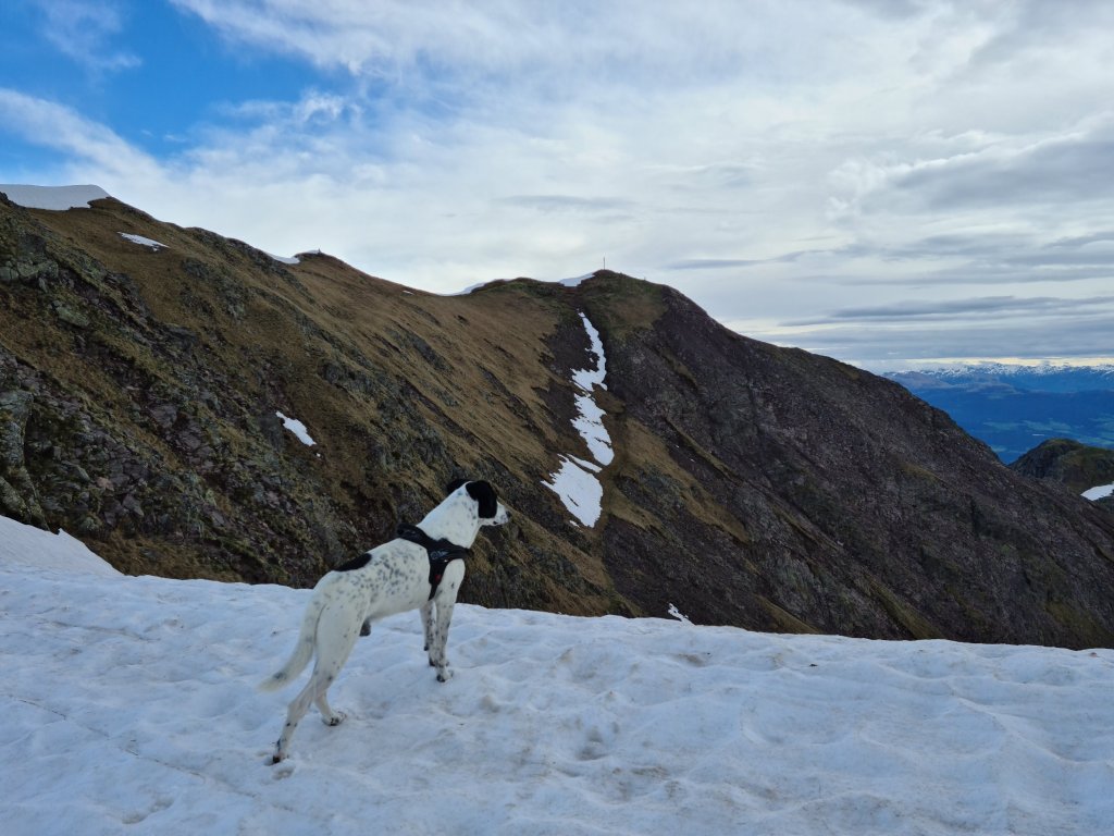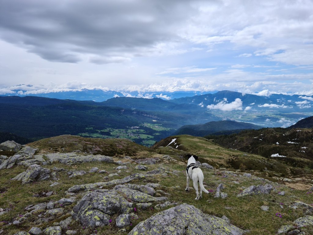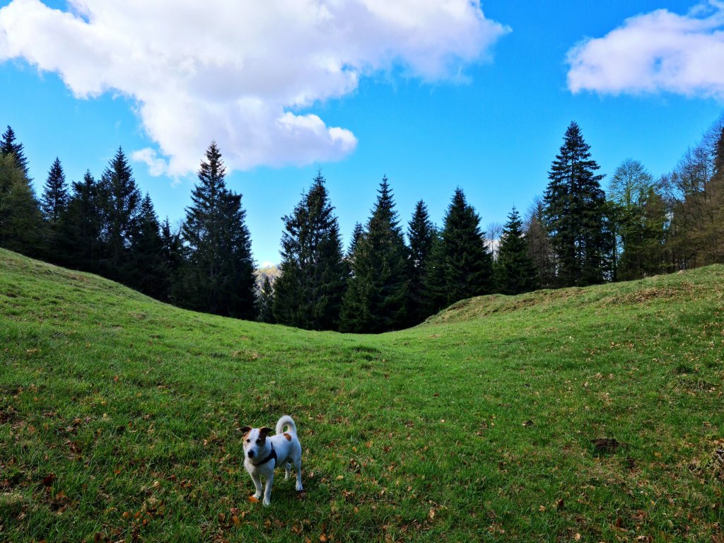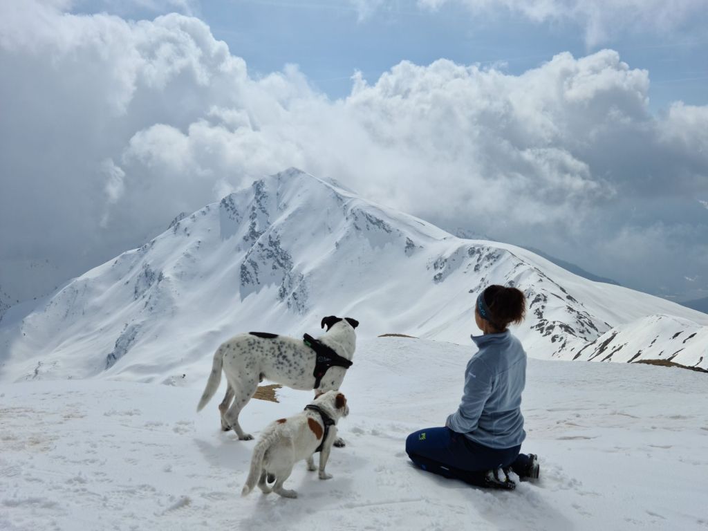 Bruno sul sentiero, davanti alle montagne che ogni giorno ci ricordano cosa significa respirare davvero. 🌿🐾