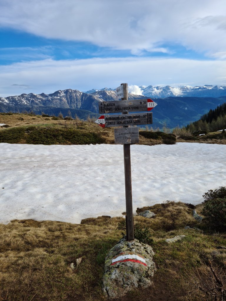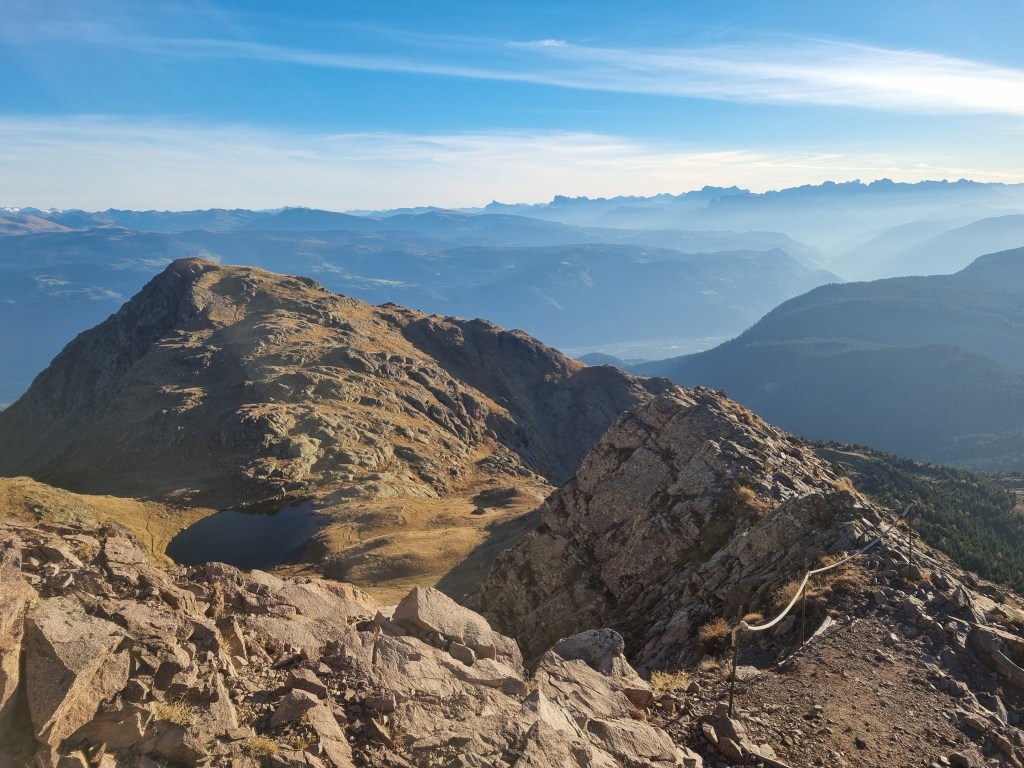 Raggiunto il lato opposto del lago, rispetto a dove si arriva, si trova una segnaletica. Sulla Tabacco online non è segnato (se non come traccia), ma in realtà c’è un sentiero vero e proprio, il 9, che, in 10 minuti, porta dritti al Kleiner Laugen, il Monte Luco Piccolo (mt. 2297), il quale, nonostante i suoi 137 mt in meno del Grande, offre comunque un panorama di tutto rispetto.