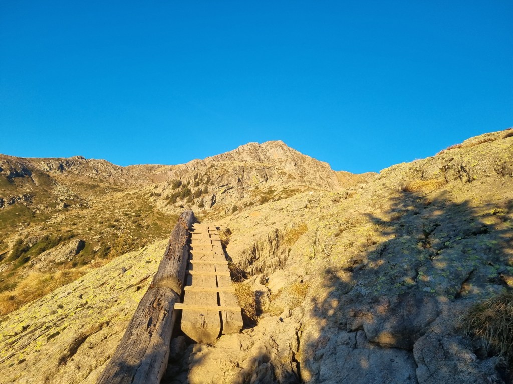 Sono tutte scale, di legno o pietra. In meno di un’ora il dislivello è di circa 500 mt. Avete presente la scritta sulle magliette: ‘Ma è tutta così?’ ‘No, tra poco spiana’ e non spiana mai? Ecco…però, devo ammettere, che, quando si esce allo scoperto, il panorama è veramente meraviglioso. E, poi, queste scale create dall’uomo sono a tratti molto belle.