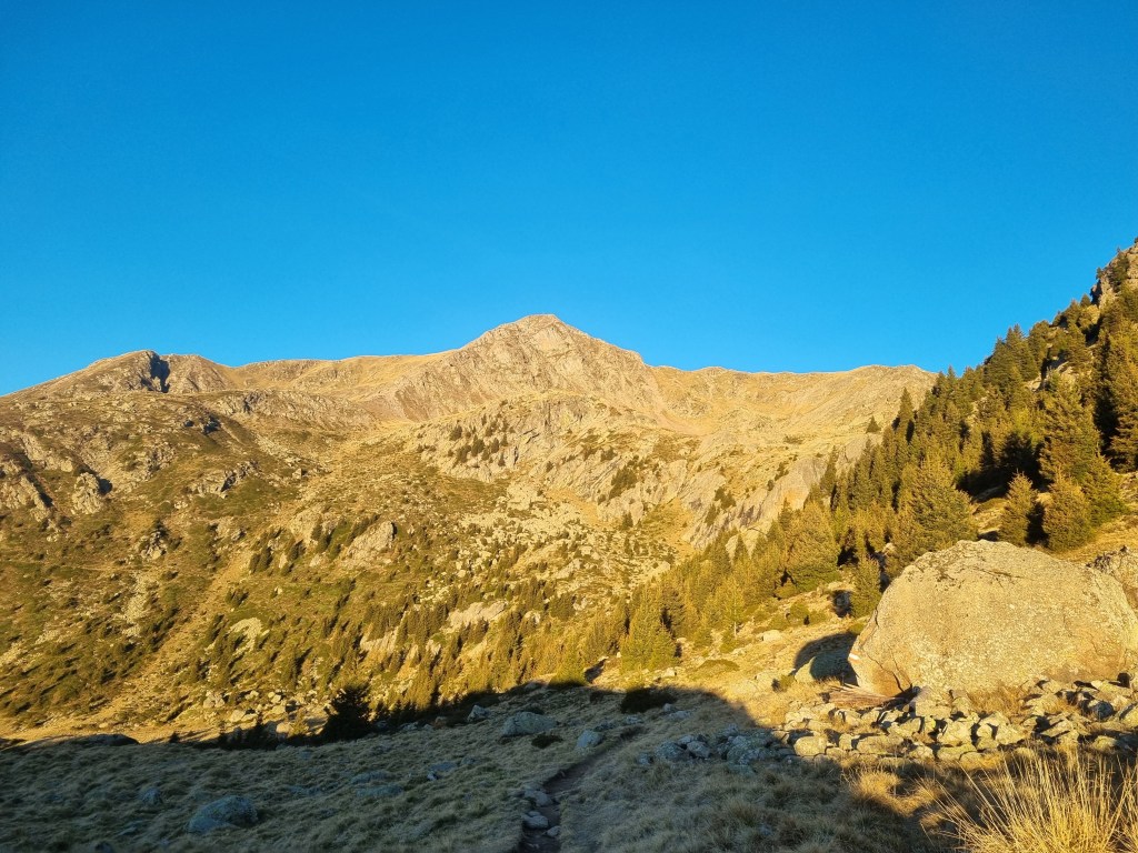 Sono partita dal parcheggio Cavallar in Val di Rabbi intorno le 5:40. Ho raggiunto la Malga Caldesa Bassa (25-30 minuti) e, poco dopo, ho preso il direttissimo (sentiero nr. 108) per il Rifugio Stella Alpina al Lago Corvo. 10 minuti prima di arrivare al Rifugio, ho lasciato il 108 per prendere il nr. 12 direzione Punta di Quaira. In 45 minuti ho raggiunto la prima tappa, la Bärhapp Spitze (mt. 2707).