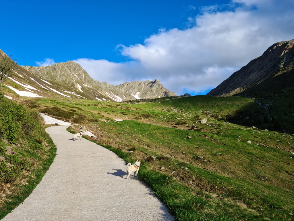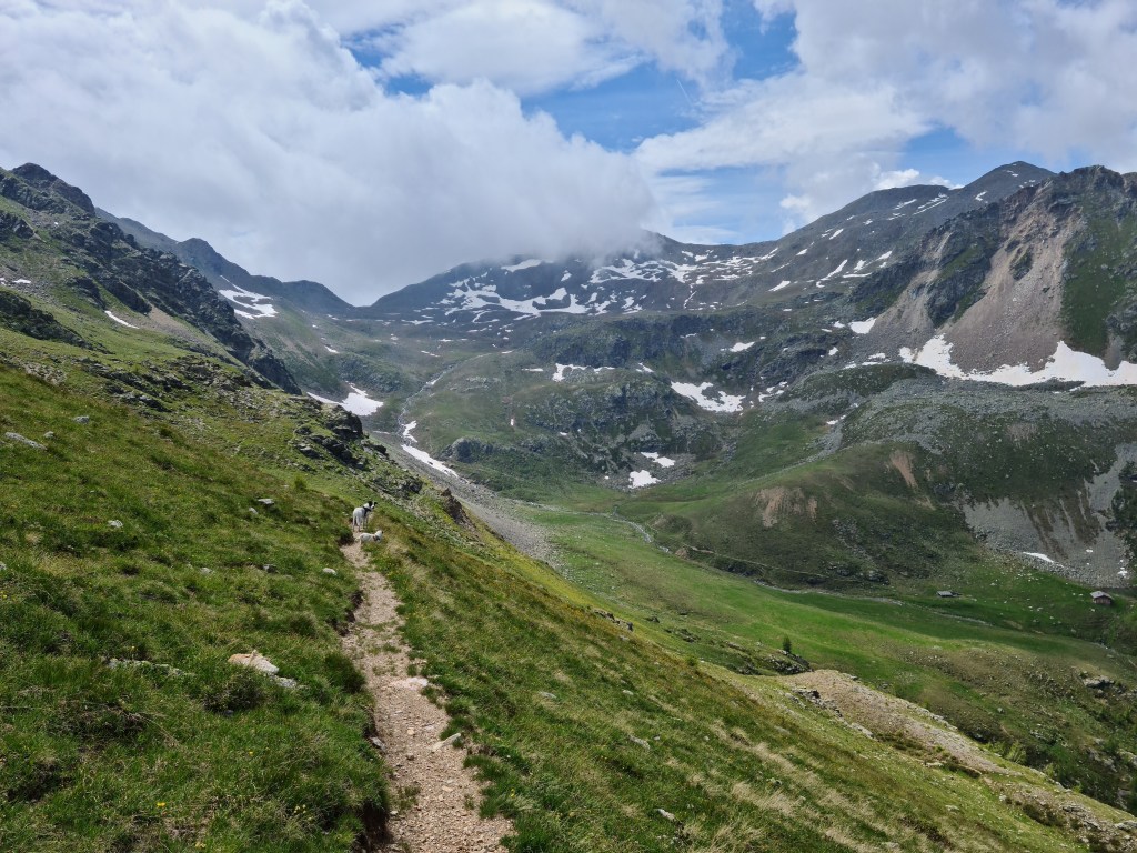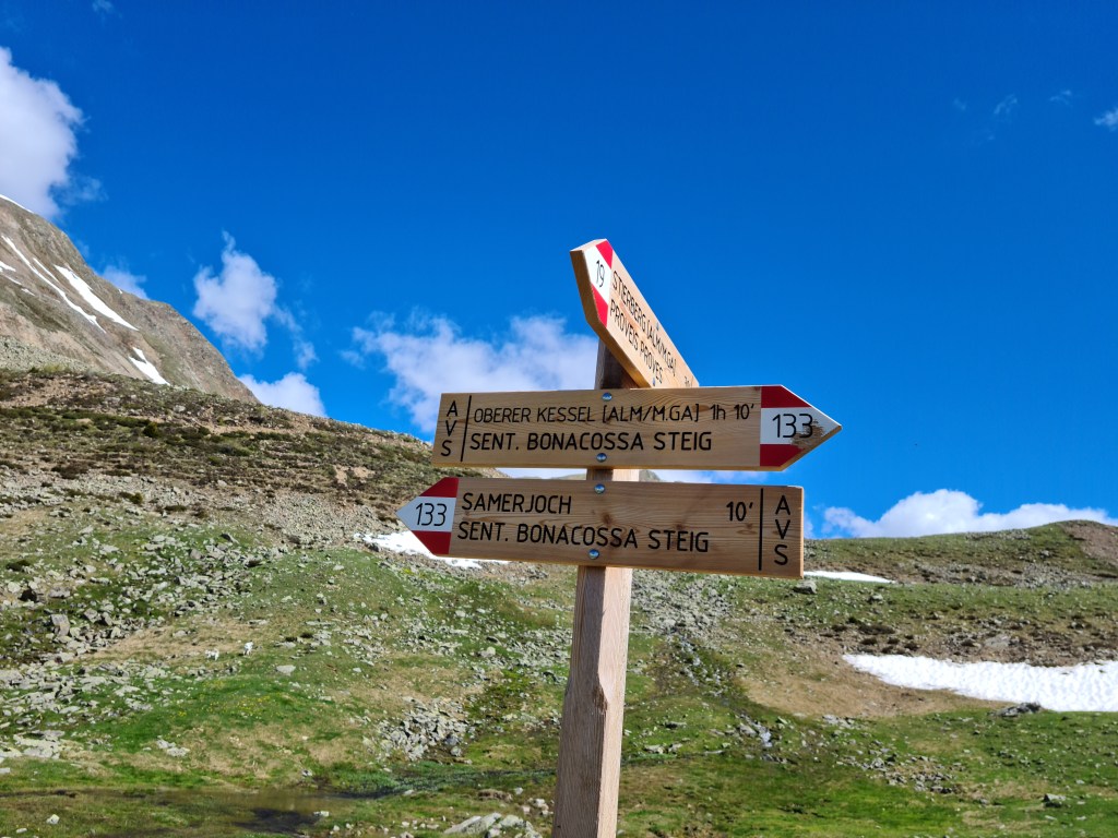 Quel giorno devo ammettere che, stranamente, non avevo un reale programma per la giornata. Quindi, diciamo che sono andata un pò all’avventura, seguendo il sole. Dal lago ho, quindi, preso il sentiero n. 133 verso il SamerJoch. Il paesaggio comunque veramente meraviglioso: per metà innevato, per metà con erba verde!