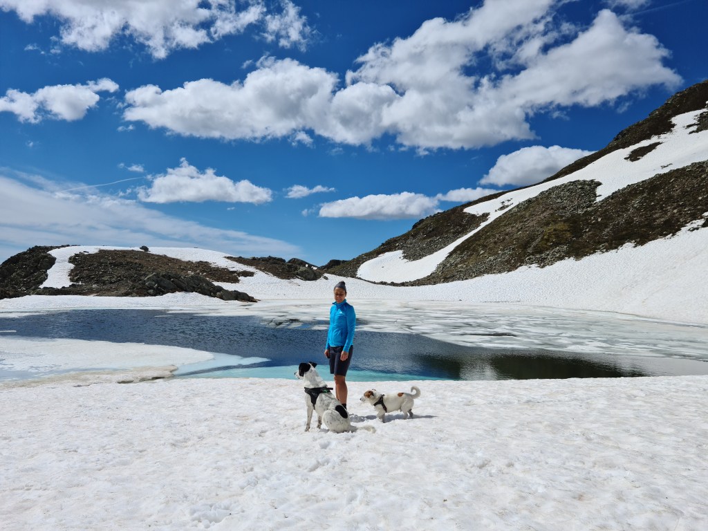 Si diverte. Lei proprio si diverte. Guarda il paesaggio (è molto curiosa…come ogni donna del resto…) ed i suoi cani (si, adesso sono suoi 🙂 ) che corrono davanti a lei. Quando la tiro fuori dallo zaino è sempre sorridente. A dir il vero, Cloe ha questa bellissima cosa, che sorride spessissimo.